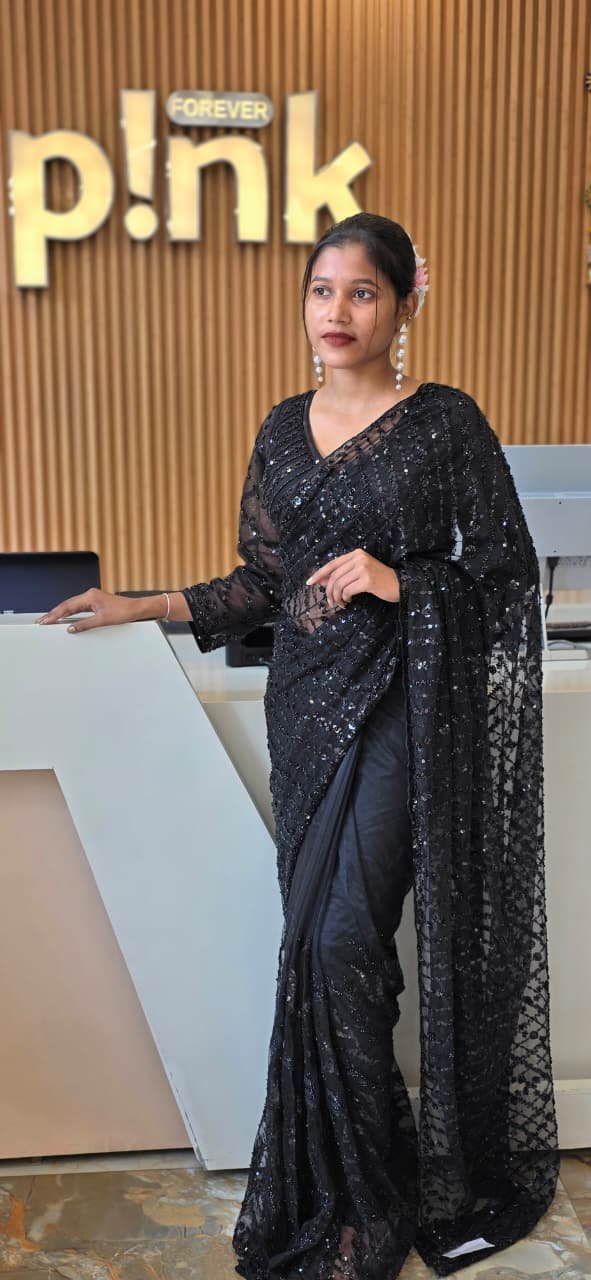 Black Saree Stone Work